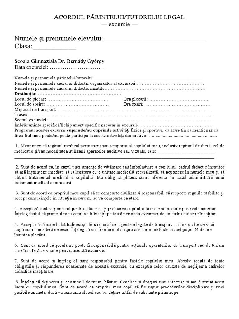 Formular Acord Părinţi Pentru Excursie Asociaţia Părinţilor