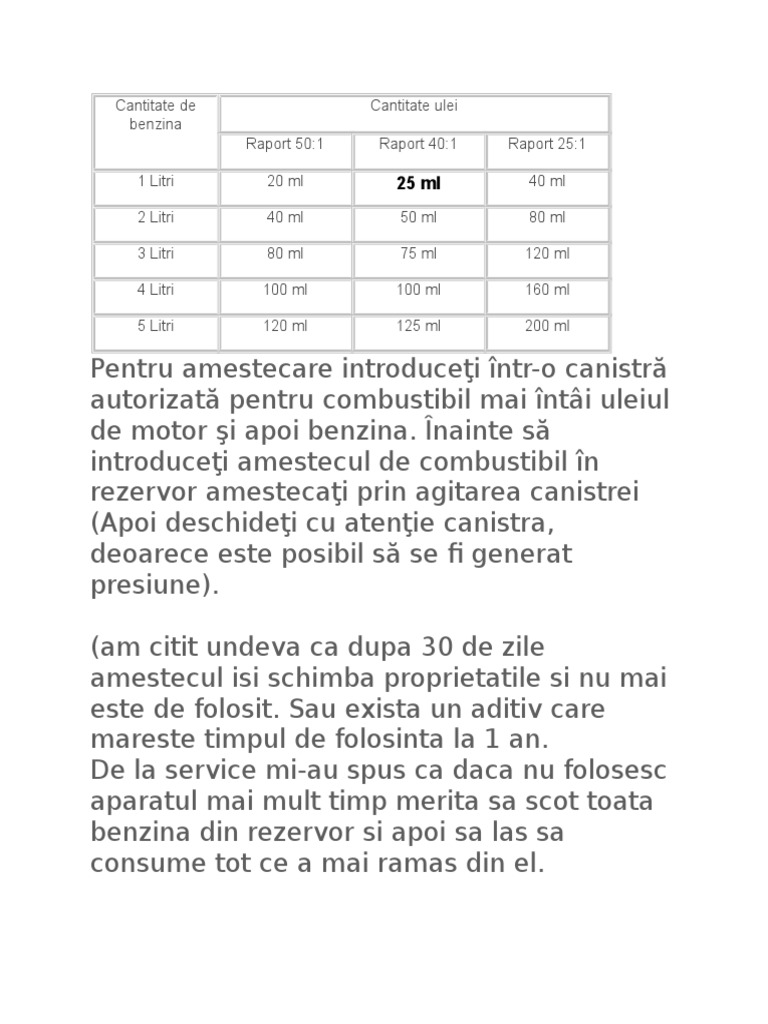 Amestec Benzina Ulei Scuter