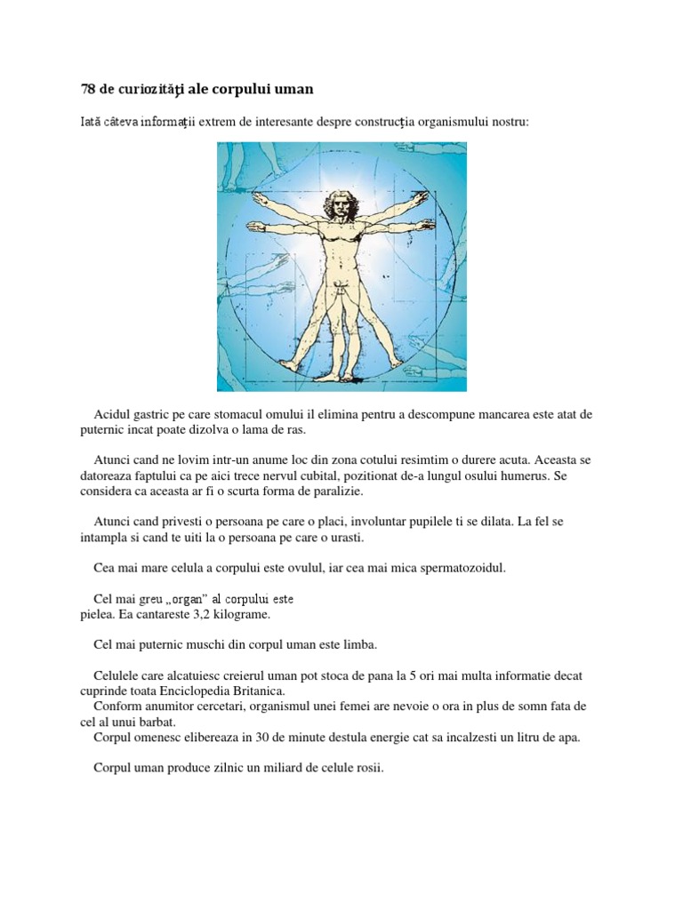 78 De Curiozități Ale Corpului Uman