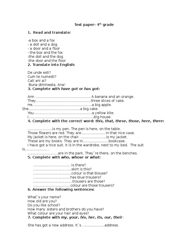 English Fourth Grade Exercices Grammar Linguistics
