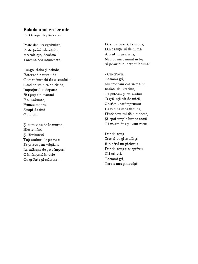 Pbc Balada Unui Greier Mic De George Toparceanu Mihai