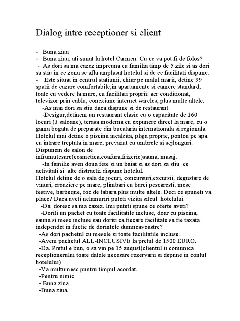 Dialog Intre Receptioner Si Client