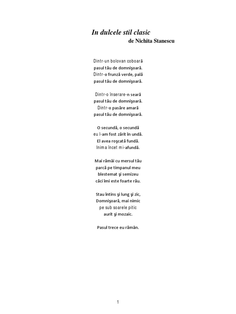 In Dulcele Stil Clasic Nichita Stanescu