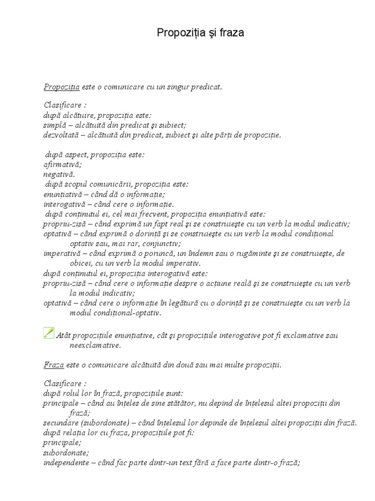Propozitia Si Fraza