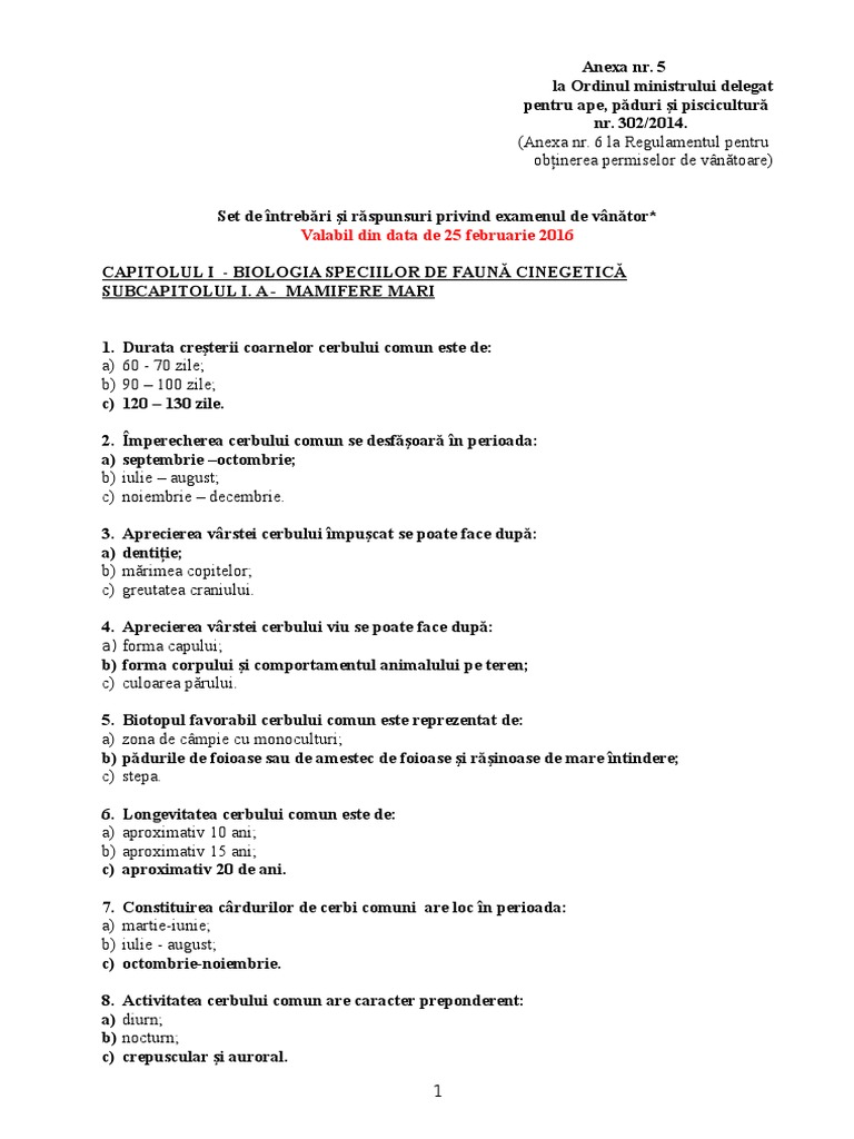 Intrebări Examen Vanător Valabile Din 25 02 2016