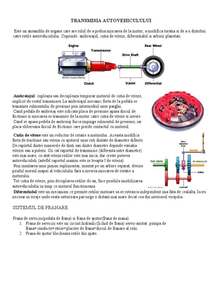 Transmisia Autovehiculului Sistemul De Franare
