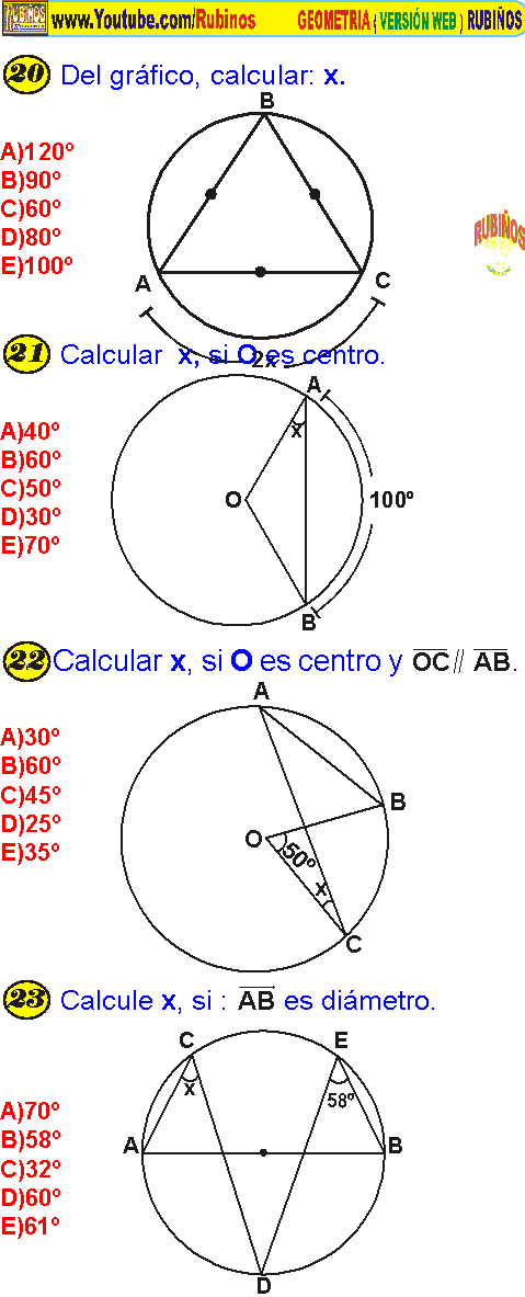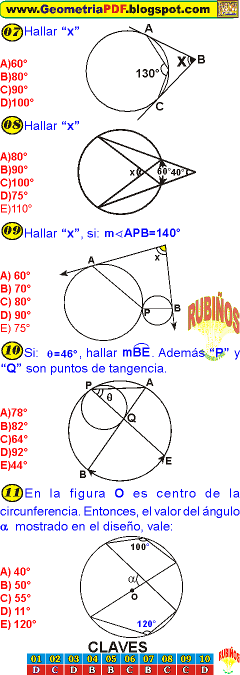 Angulos En La Circunferencia Ejercicios Resueltos Pdf